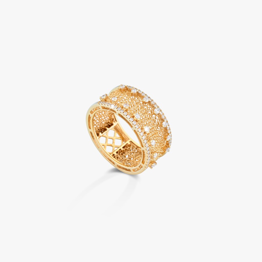 Un emblema di stile ed eleganza. La filigrana separa due file di diamanti taglio brillante per una creazione irriverente e creativa.