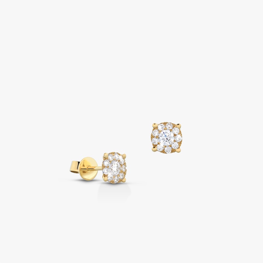 Luminosità ed eleganza racchiusi in un piccolo orecchino in oro 18 kt giallo e diamanti taglio brillante.